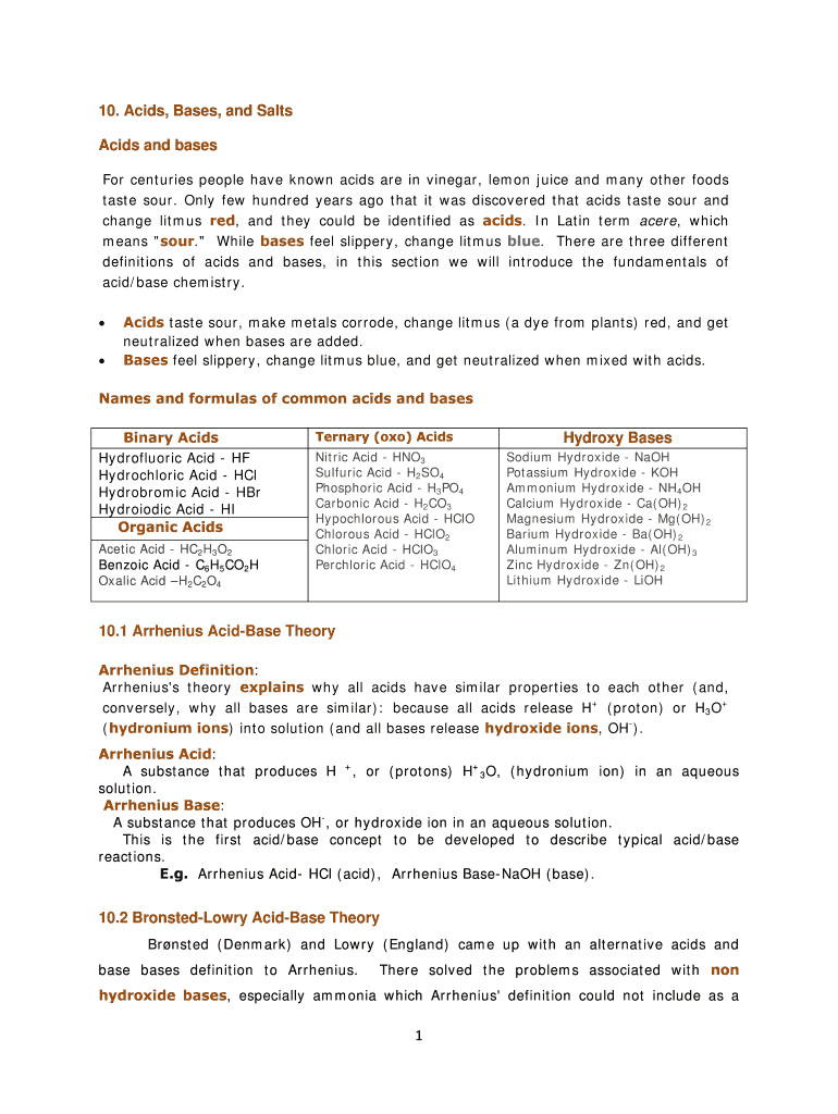 10. Acids, Bases, and Salts Acids and bases For centuries people have known acids are in vinegar, lemon juice and many other foods taste sour. Only few hundred years ago that it was discovered that