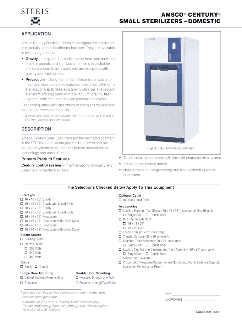 Get the free AMSCO CENTURY SMALL STERILIZERS DOMESTIC - faculty pnc
