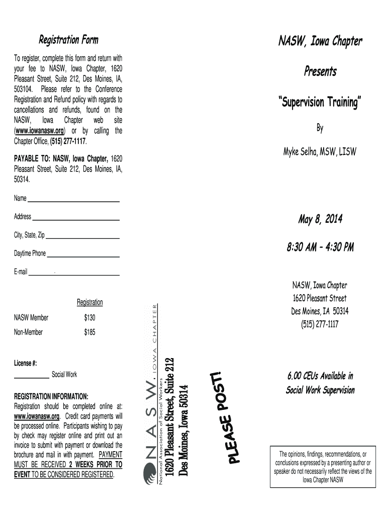 Registration Form To register, complete this form and return with your fee to NASA, Iowa Chapter, 1620 Pleasant Street, Suite 212, Des Moines, IA, 503104. Please refer to the Conference Registration