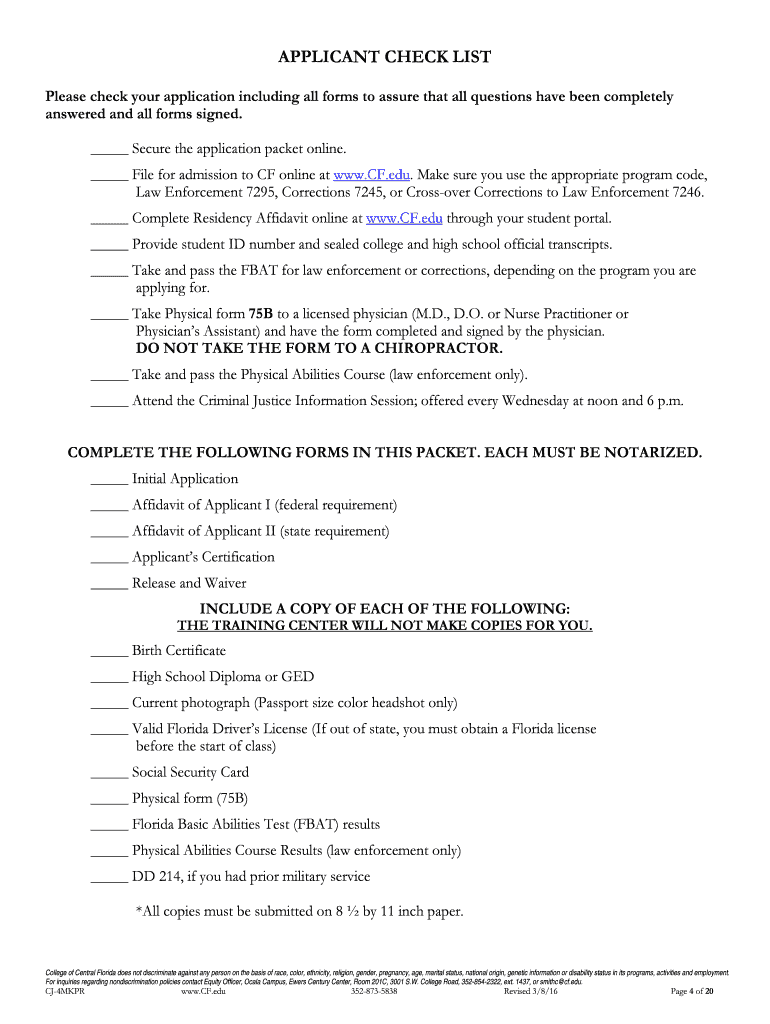 ACADEMY RECRUIT APPLICATION PACKET CRIMINAL JUSTICE INSTITUTE COLLEGE OF CENTRAL FLORIDA MISSION STATEMENT Energetic, purposeful, creative, College of Central Florida promotes learning in an open,