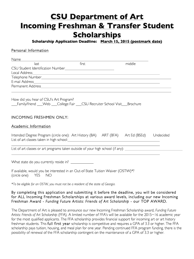 Get the free Dept of Art FFA and Incoming Freshman Scholarship2015doc - art columbusstate