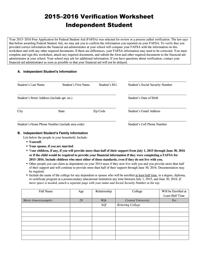 How to fill out 2015 independent student