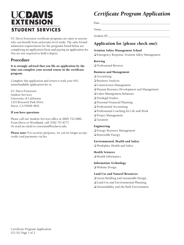 Get the free UC Davis Extension Certificate Program Application