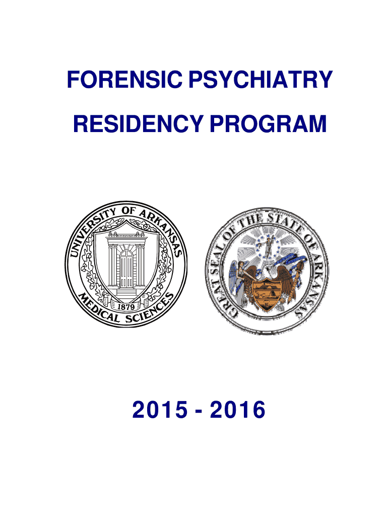 FORENSIC PSYCHIATRY RESIDENCY PROGRAM 2015 2016 UNIVERSITY OF ARKANSAS FOR MEDICAL SCIENCES COLLEGE OF MEDICINE DEPARTMENT OF PSYCHIATRY AND THE DIVISION OF BEHAVIORAL HEALTH SERVICES FORENSIC PSYCHIATRY