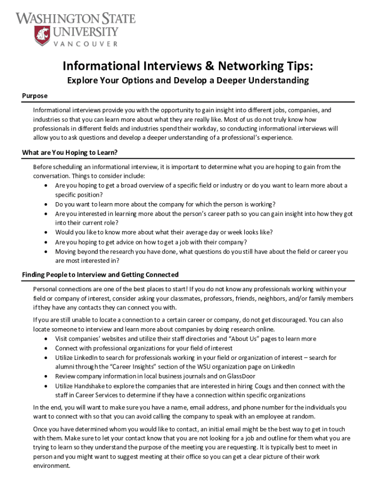 Get the free Informational Interviews and Networking TipsCareer ServicesWSU Vancouver - studentaf...