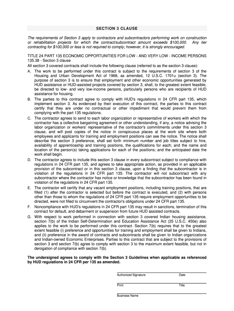provided in 24 CFR Part 135. The purpose of Section