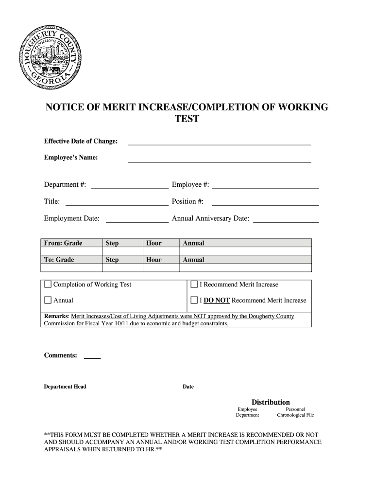 Get the free NOTICE OF MERIT CHANGE-no merits colas approveddoc - albany ga
