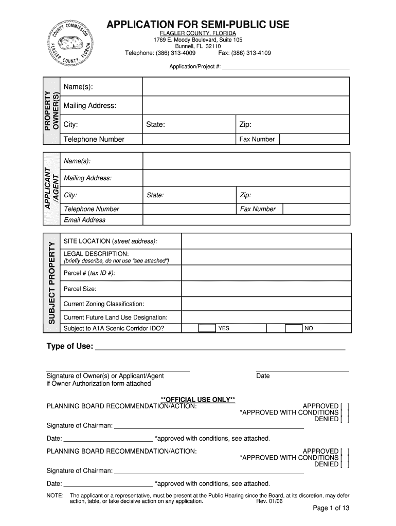 APPLICATION FOR SEMIPUBLIC USE FLAGLER COUNTY, FLORIDA 1769 E. Moody Boulevard, Suite 105 Bonnell, FL 32110 Telephone: (386) 3134009 Fax: (386) 3134109 Application/Project #: PROPERTY OWNER(S) Name(s):
