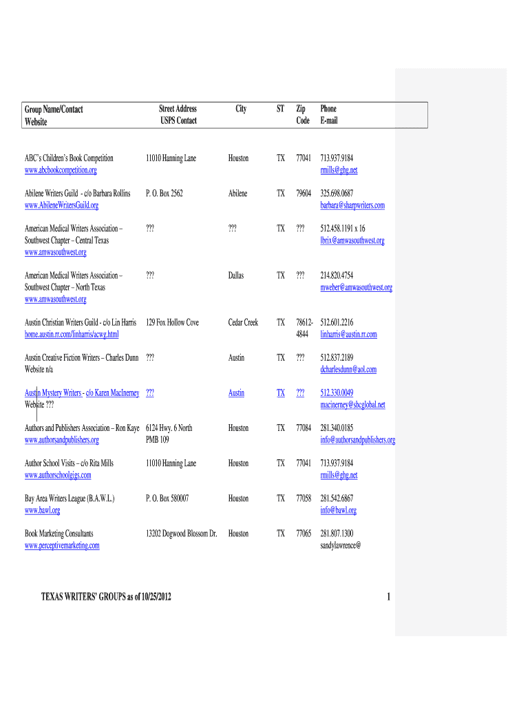 Get the free NameContact City ST Zip Phone Website USPS - westtexaswriters
