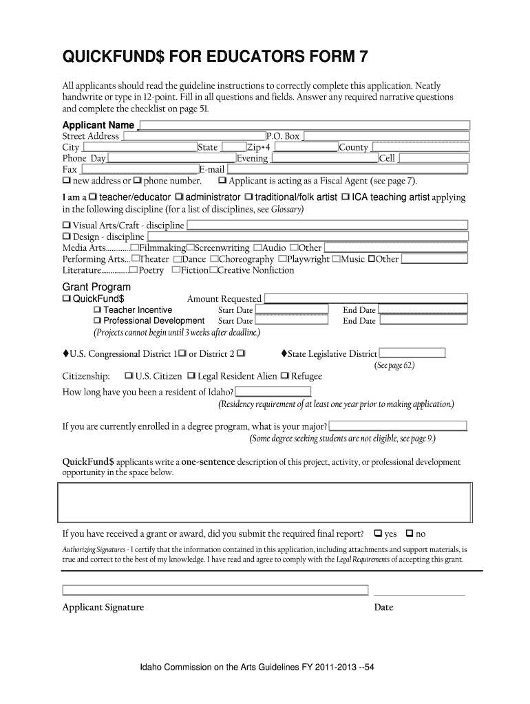 Get the free QUICKFUND$ FOR EDUCATORS FORM 7 All applicants should read the guideline instruction...