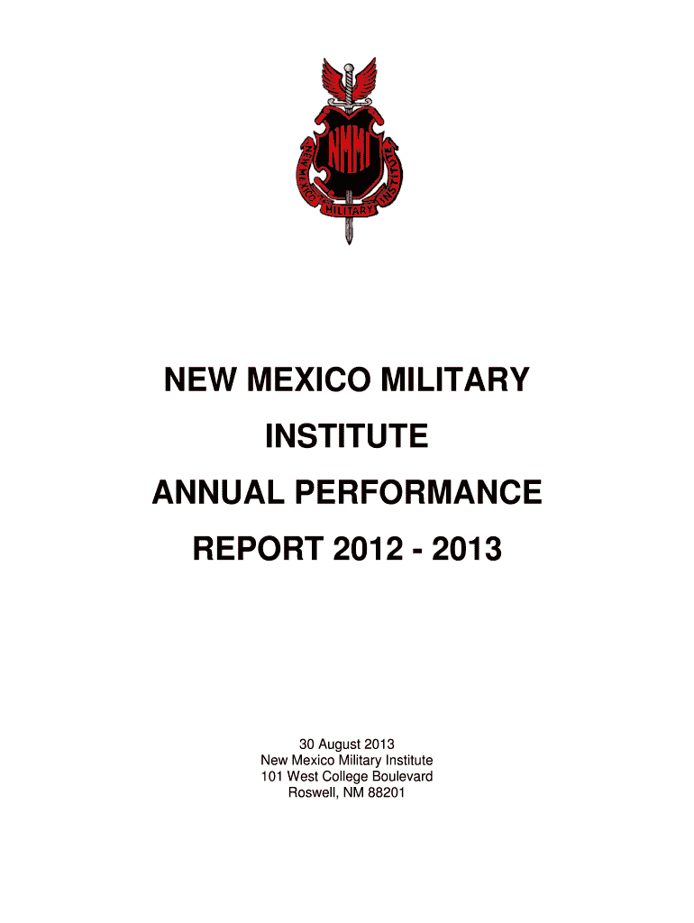 Get the free NEW MEXICO MILITARY INSTITUTE ANNUAL PERFORMANCE REPORT - nmmi