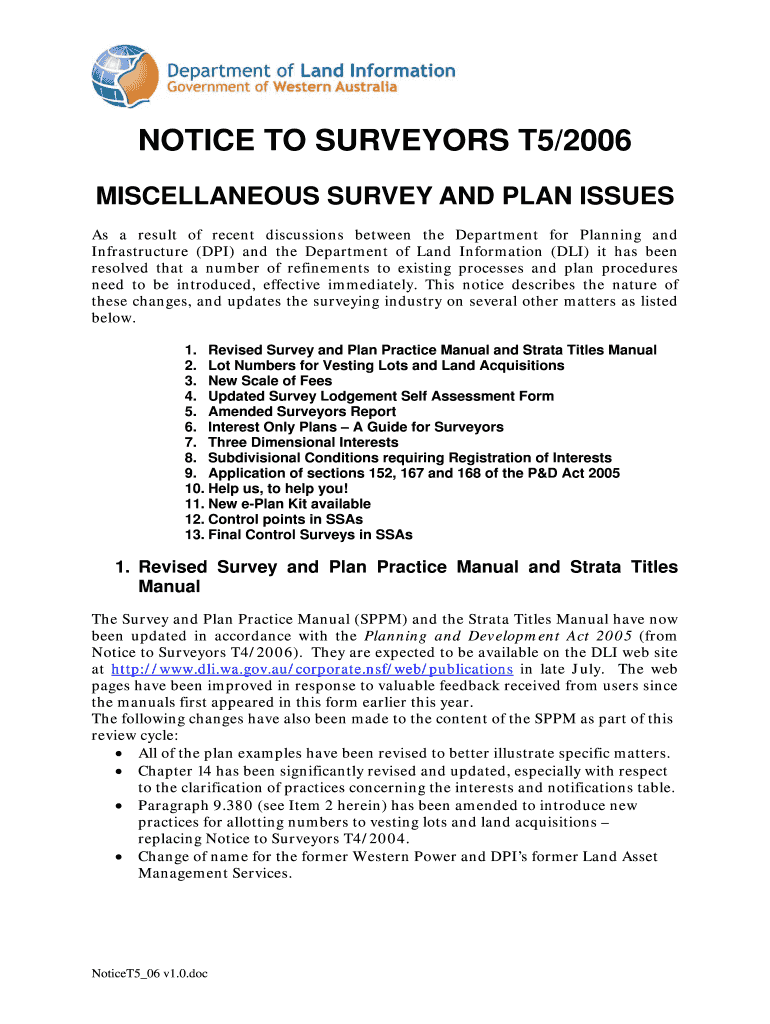 Get the free NOTICE TO SURVEYORS T52006 MISCELLANEOUS SURVEY AND PLAN ISSUES
