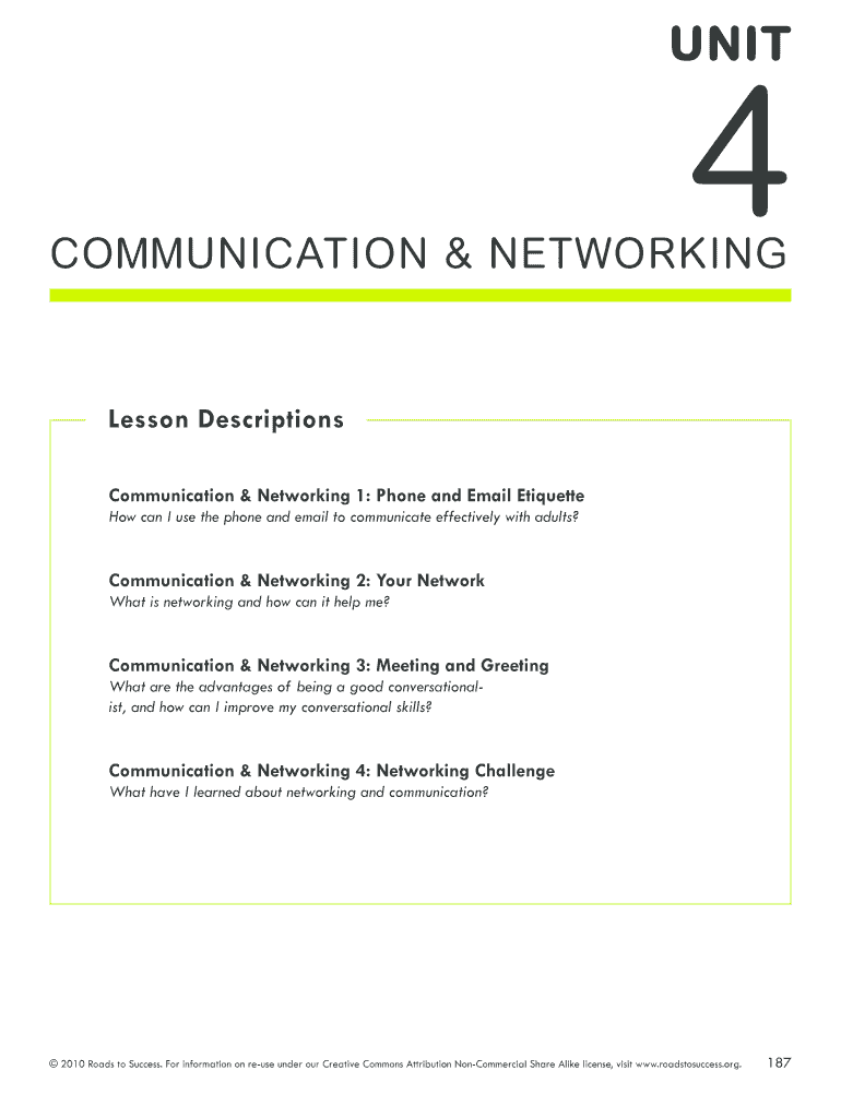 UNIT 4 Communication & Networking Lesson Descriptions Communication & Networking 1: Phone and Email Etiquette How can I use the phone and email to communicate effectively with adults? Communication