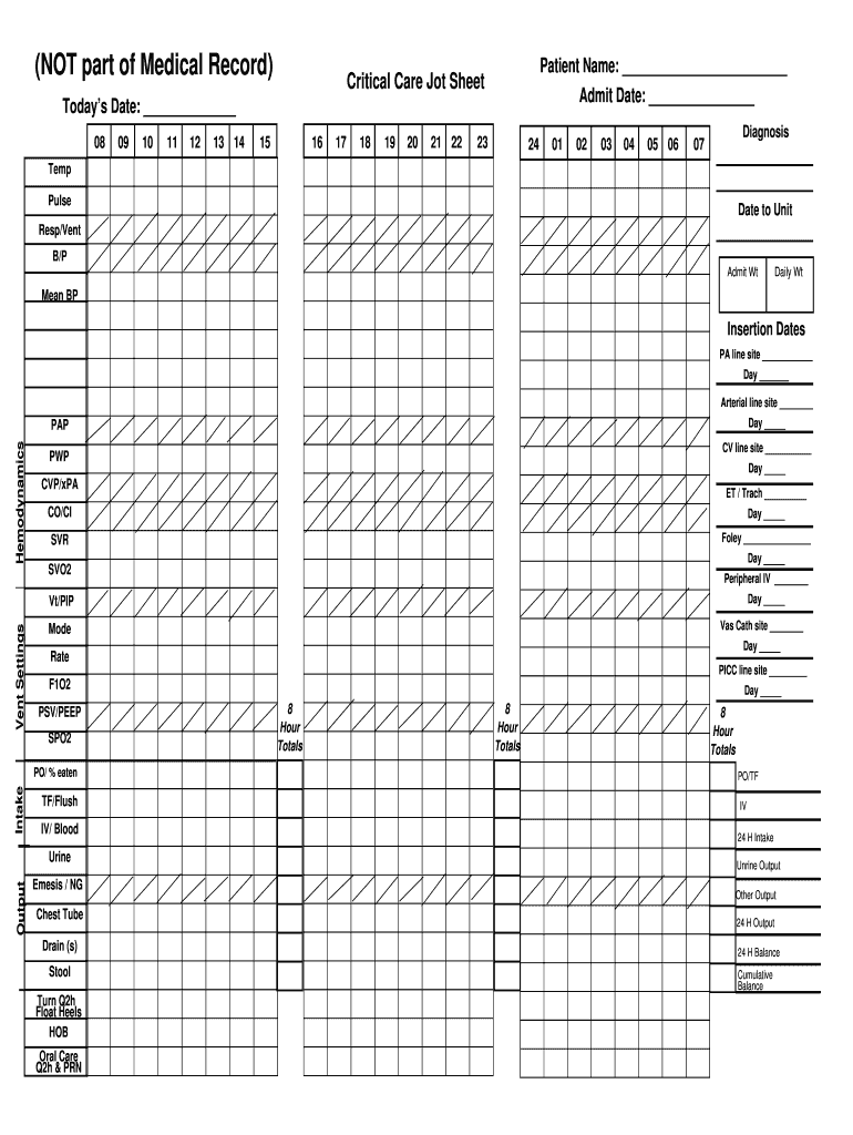 Get the free NOT part of Medical Record Critical Care Jot Sheet - support providencehospital