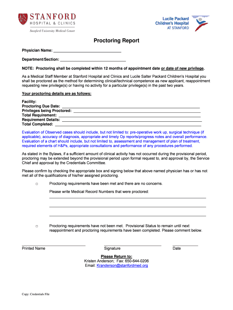 Get the free Proctoring Report - Lucile Packard Childrens Hospital - intranet lpch