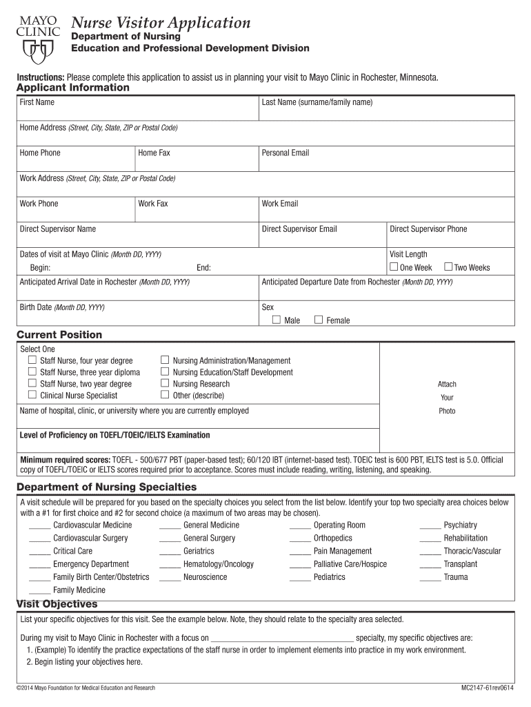 Get the free Nurse Visitor Application - Mayo Clinic - mayo