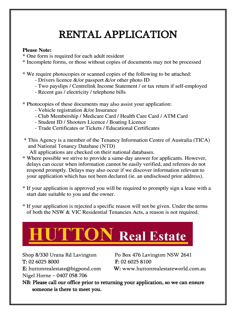 RENTAL APPLICATION Please Note: * One form is required for each adult resident * Incomplete forms, or those without copies of documents may not be processed * We require photocopies or scanned copies