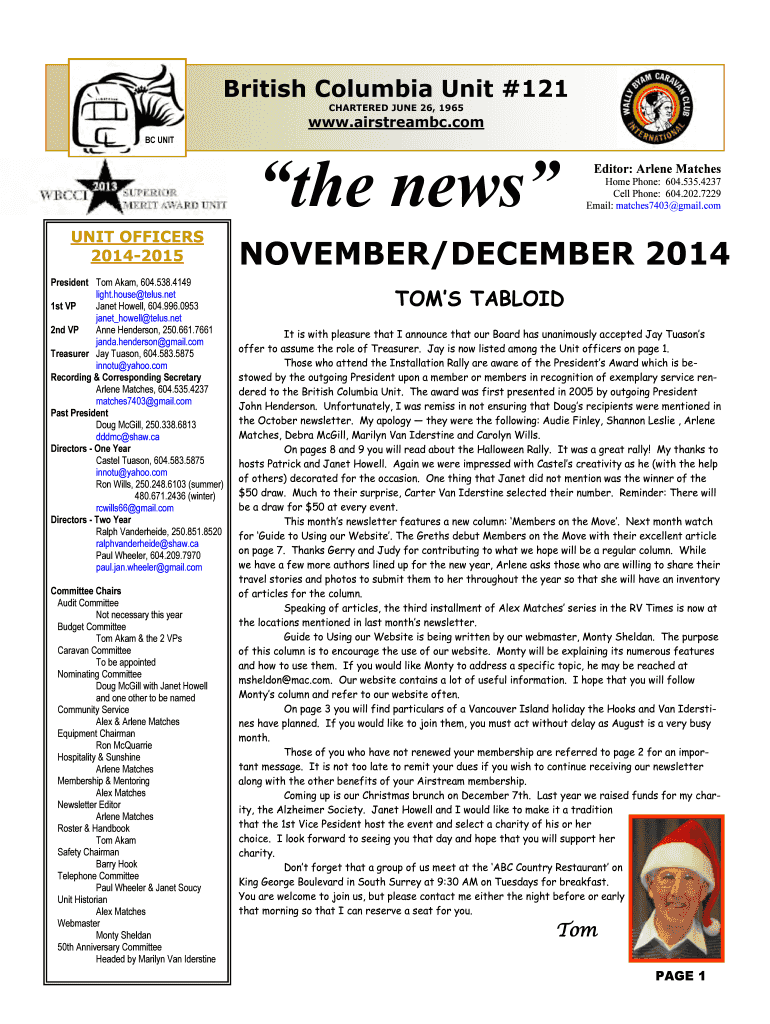 British Columbia Unit #121 CHARTERED JUNE 26, 1965 www.airstreambc.com BC UNIT the news UNIT OFFICERS 20142015 President Tom Adam, 604.538.4149 light. House Telus.net 1st VP Janet Howell, 604.996.0953