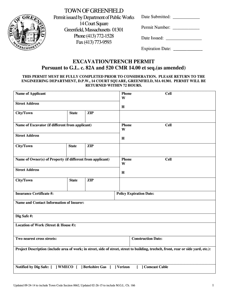 Get the free DPW - bExcavationTrenchPermitbpdf - Greenfield
