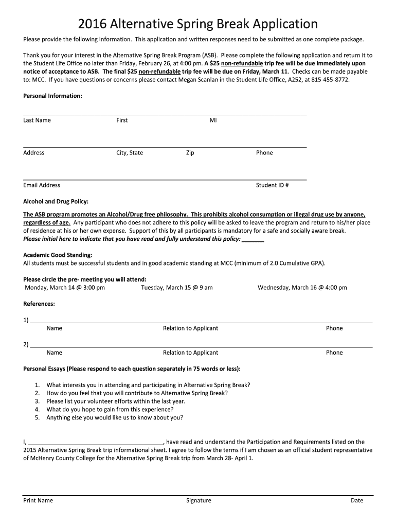 Thank you for your interest in the Alternative Spring Break Program (ASB). Below is information about the trip for you to keep and