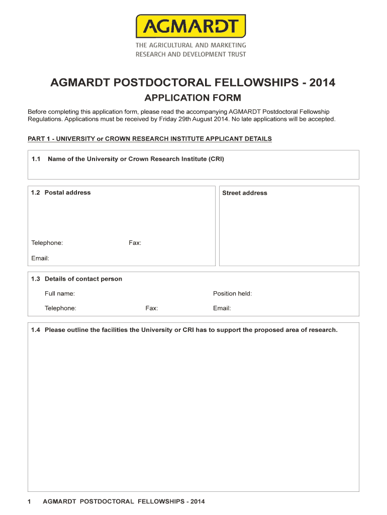 Submitting the AGMARDT Postdoctoral Fellowship Application Form