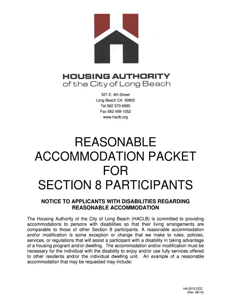 Get the free Reasonable Accommodation Packet for Section 8 Participants