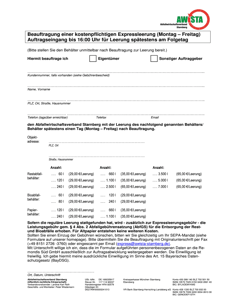 Beauftragung anger kostenpflichtigen Expressleerung (Montag Freytag) Auftragseingang bis 16:00 UHF for Leering Stevens am Forget (Bitter Stephen She den Better unmittelbar each Beauftragung our Leering