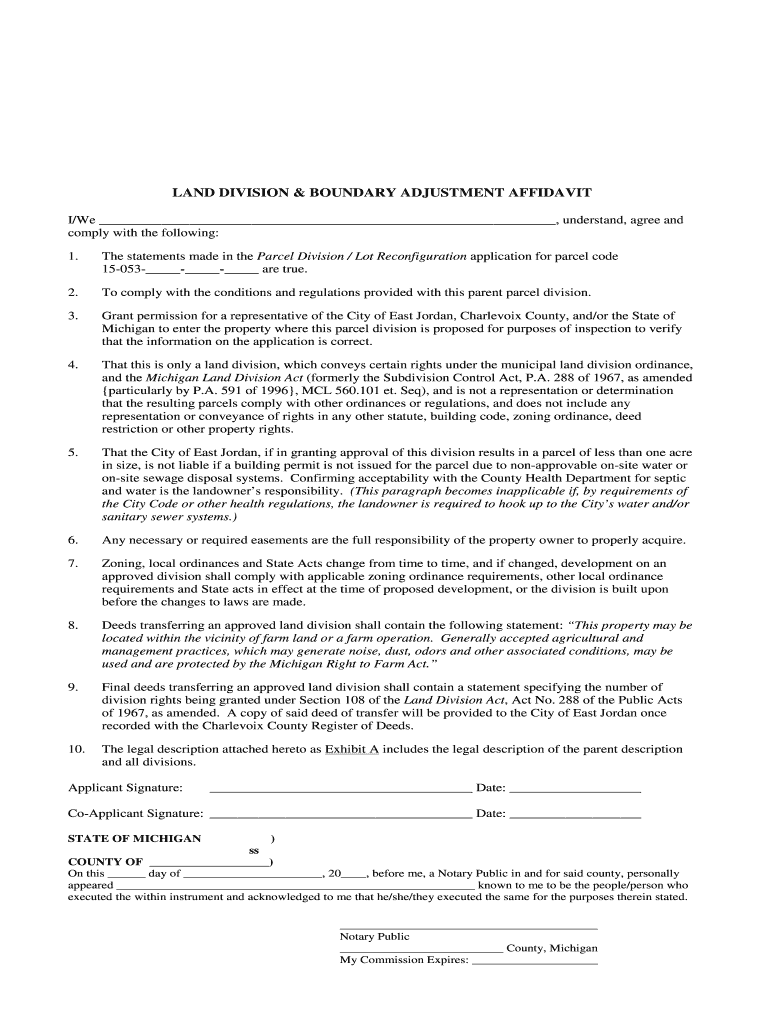 Get the free LAND DIVISION BOUNDARY ADJUSTMENT AFFIDAVIT - eastjordancity