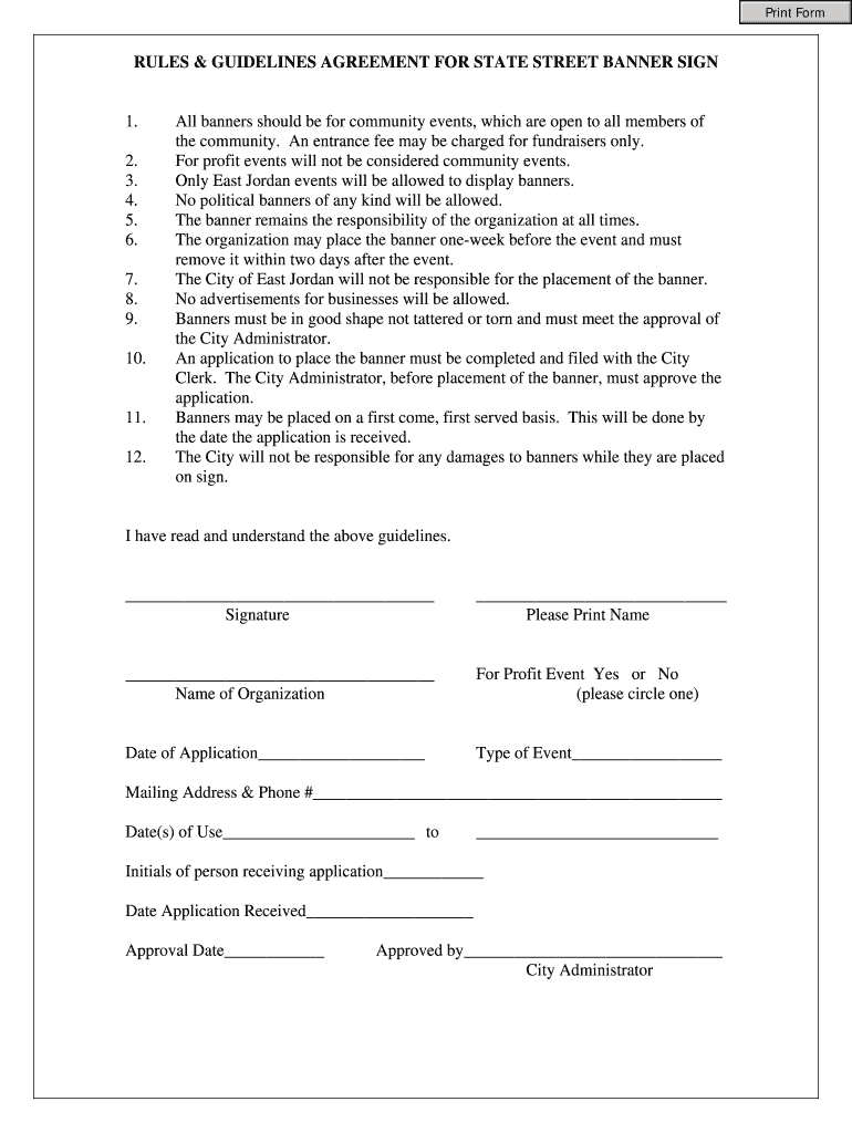 Get the free RULES GUIDELINES AGREEMENT FOR STATE STREET BANNER SIGN - eastjordancity