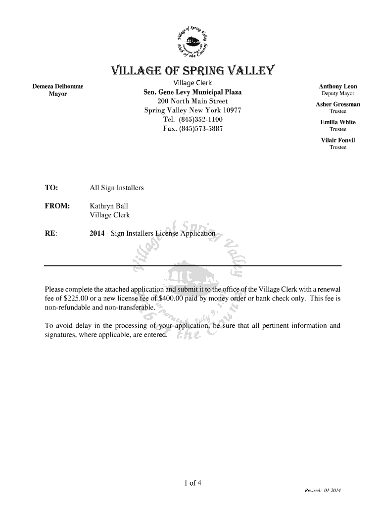 VILLAGE OF SPRING VALLEY Village Clerk Sen. Gene Levy Municipal Plaza 200 North Main Street Spring Valley New York 10977 Tel. (845)3521100 Fax. (845)5735887 Dempsey Welcome Mayor Anthony Leon Deputy