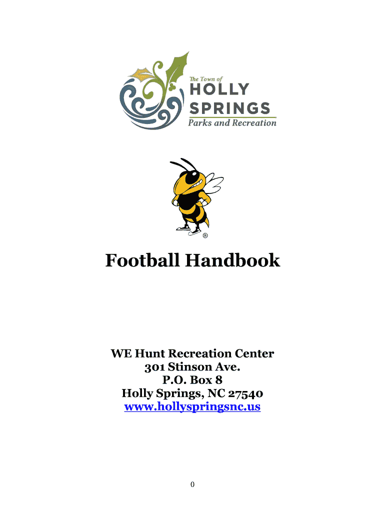 Football Handbook Hunt Recreation Center 301 Stinson Ave. P.O. Box 8 Holly Springs, NC 27540 www.hollyspringsnc.us0Table of Contents A LETTER TO THE PARENTS .............................................................................2