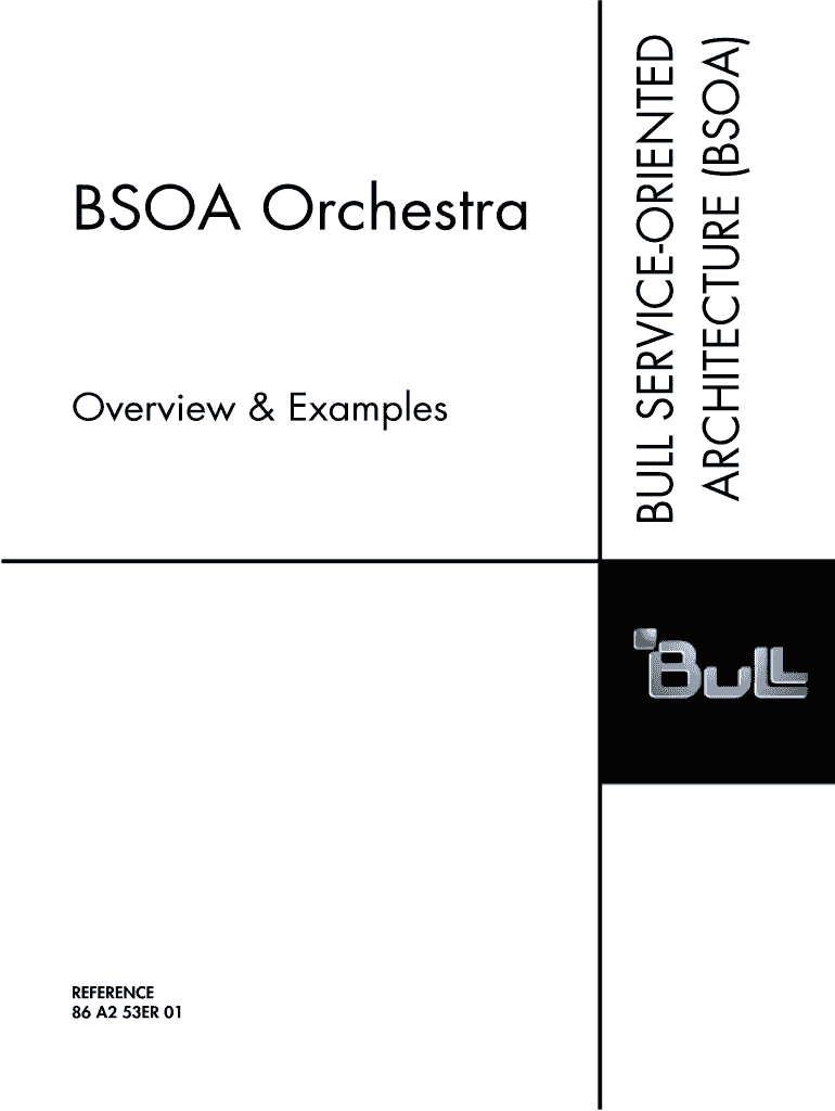 Overview & Examples REFERENCE 86 A2 53ER 01 BULL SERVICEORIENTED ARCHITECTURE (BSA) BSA Orchestra BULL SERVICEORIENTED ARCHITECTURE (BSA) BSA Orchestra Overview & Examples BSA Orchestra v3.0 Software