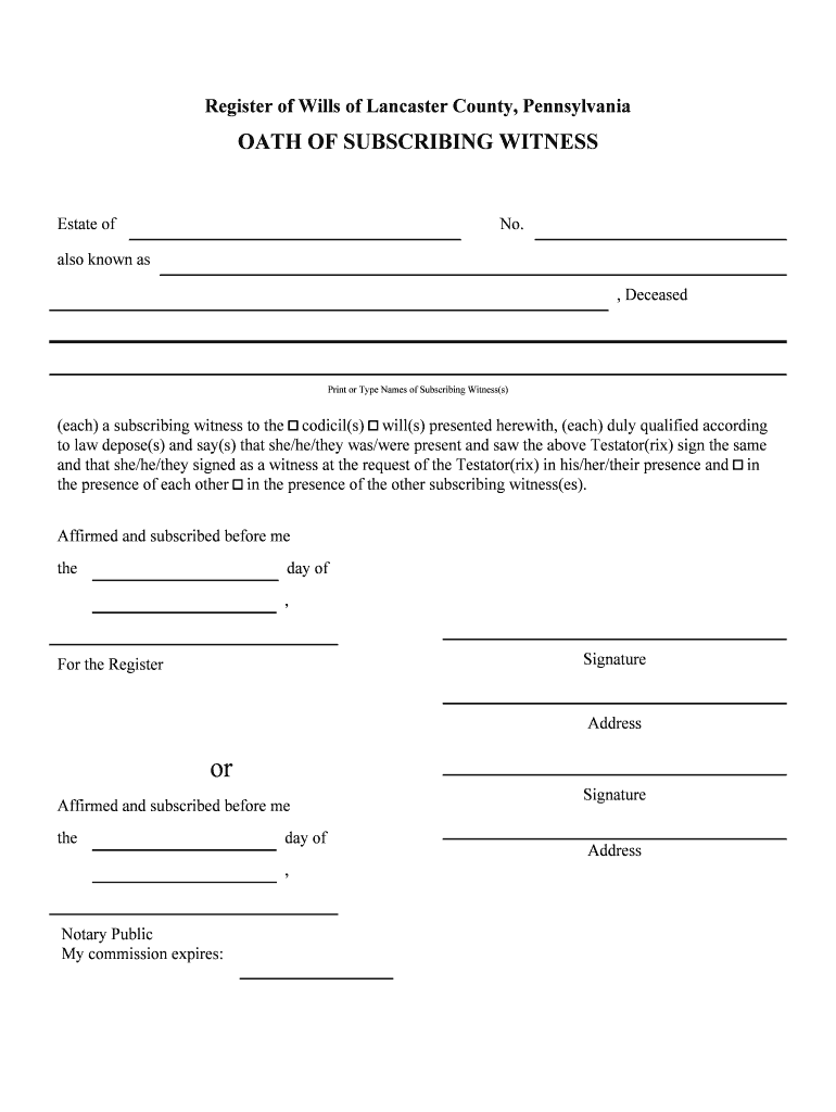 Get the free Oath of Subscribing Witness - co lancaster pa