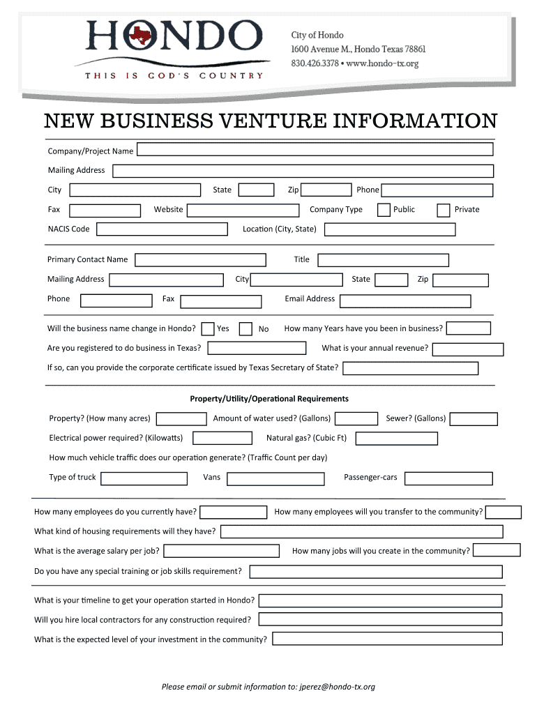 Get the free NEW BUSINESS VENTURE INFORMATION - Hondo Texas