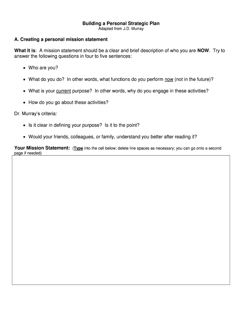 Get the free Building a Personal Strategic Plan
