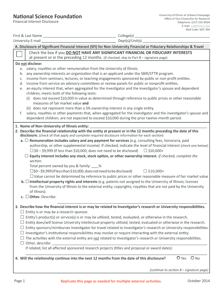 National Science Foundation University of Illinois at Urbana Champaign Office of Vice Chancellor for Research Telephone: (217) 3330034 Email: COI Illinois.edu Mail Code: M/C 304 Financial Interest