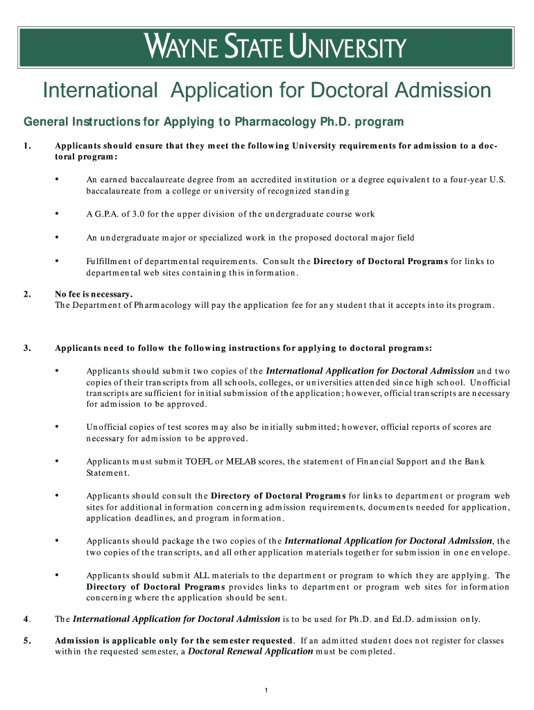 Get the free International Application for Doctoral Admission - med wayne