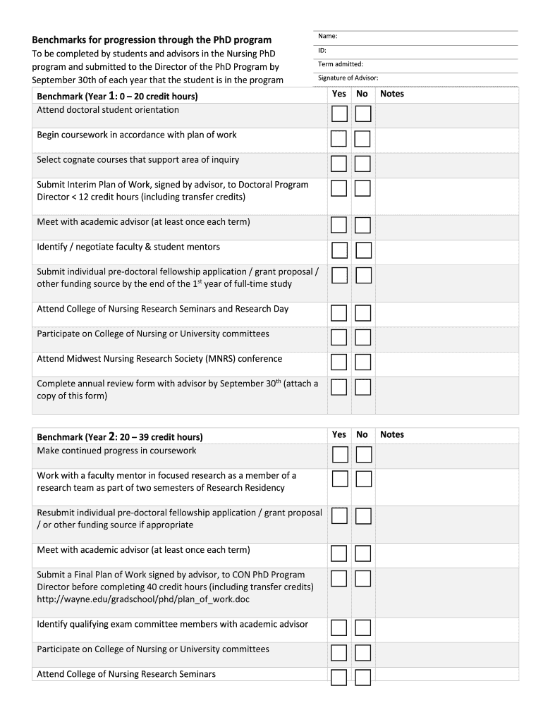 Get the free Benchmarks for progression through the PhD program Name - nursing wayne