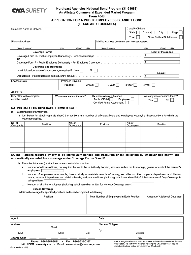 Northeast Agencies National Bond Program (3121688) An Allstate Commercial Expanded Market Program Form 40B APPLICATION FOR A PUBLIC EMPLOYEE IS BLANKET BOND (TEXAS AND LOUISIANA) Classify Obliged