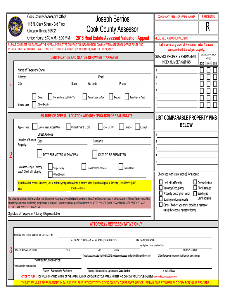 Get the free Joseph Berrios COOK COUNTY ASSESSOR APPEAL NUMBER R