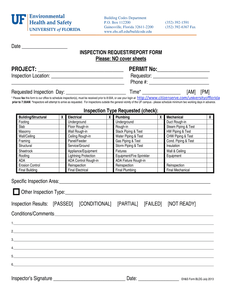 Get the free Inspection Request/Report Form