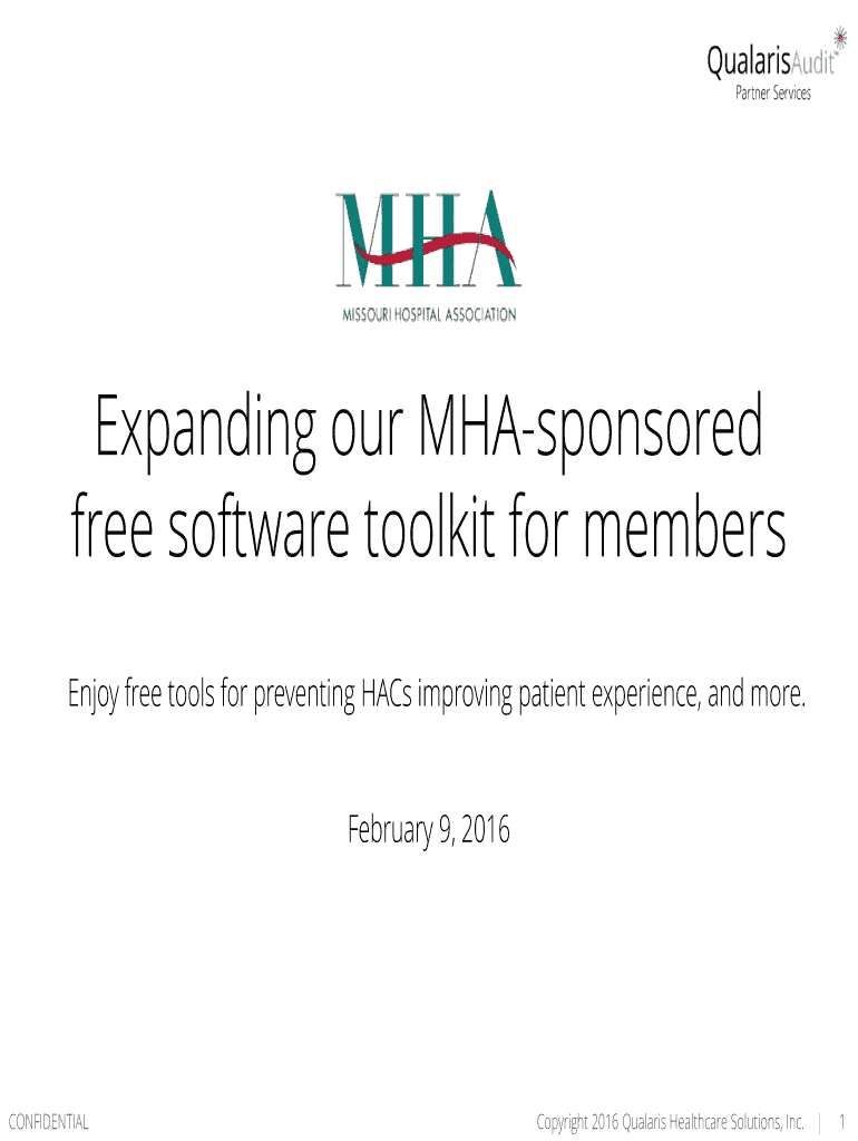 Expanding our Sponsored free software toolkit for members Enjoy free tools for preventing Has improving patient experience, and more. February 9, 2016CONFIDENTIALCopyright 2016 Quasars Healthcare