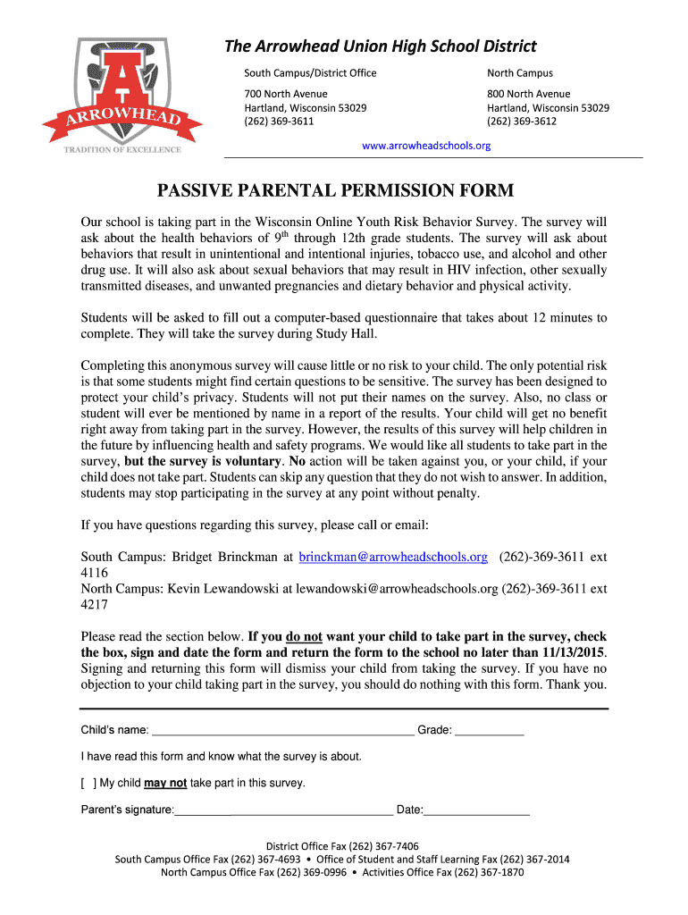 Get the free 11-9-b2015b Youth Risk Behavior Survey - arrowheadschools