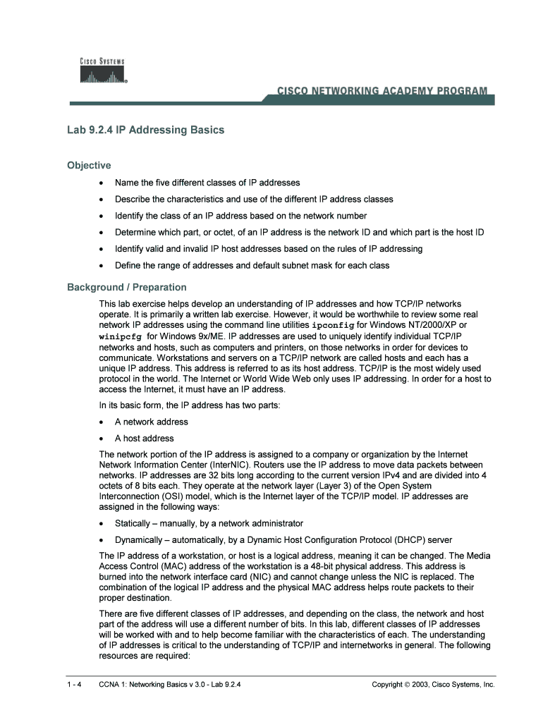 Get the free Lab 924 IP Addressing Basics