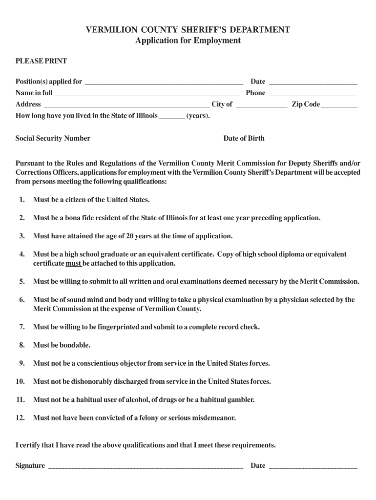 Get the free Sheriff Employment Application.pmd - co vermilion il
