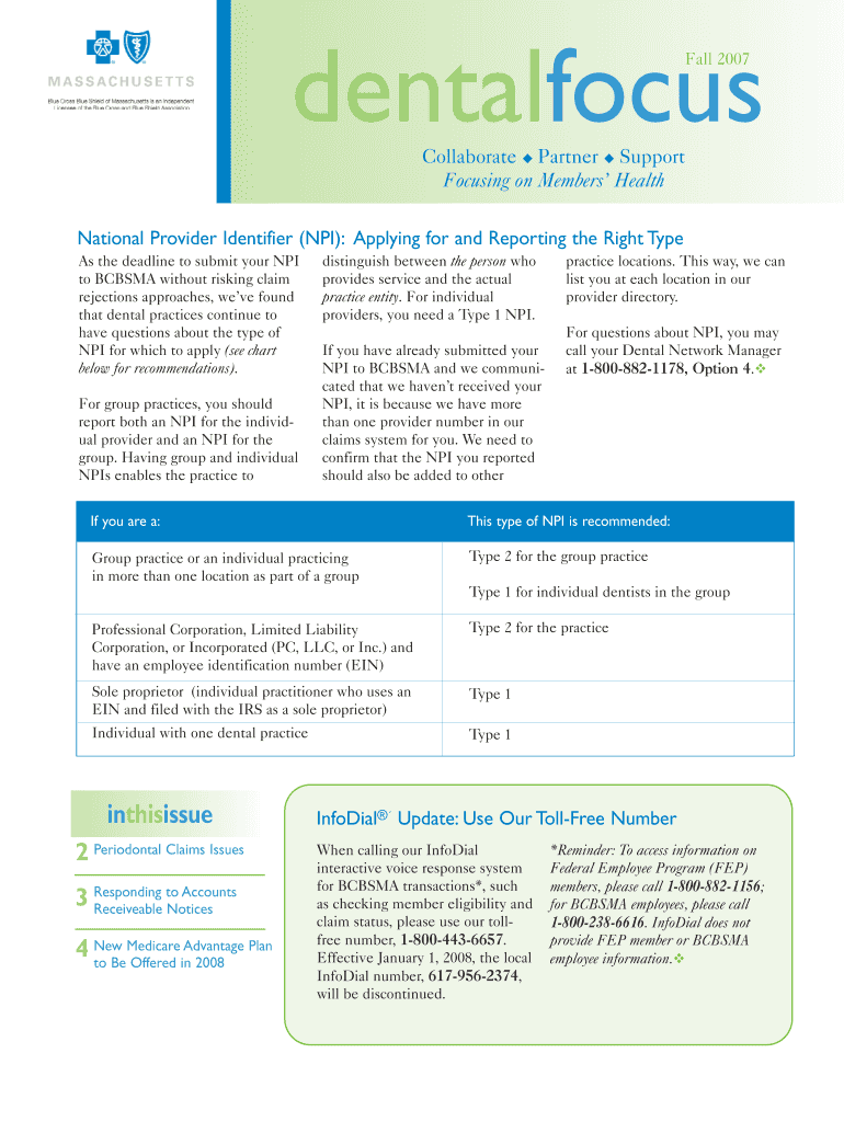 Get the free Dental focus Fall 2007 - Blue Cross Blue Shield MA