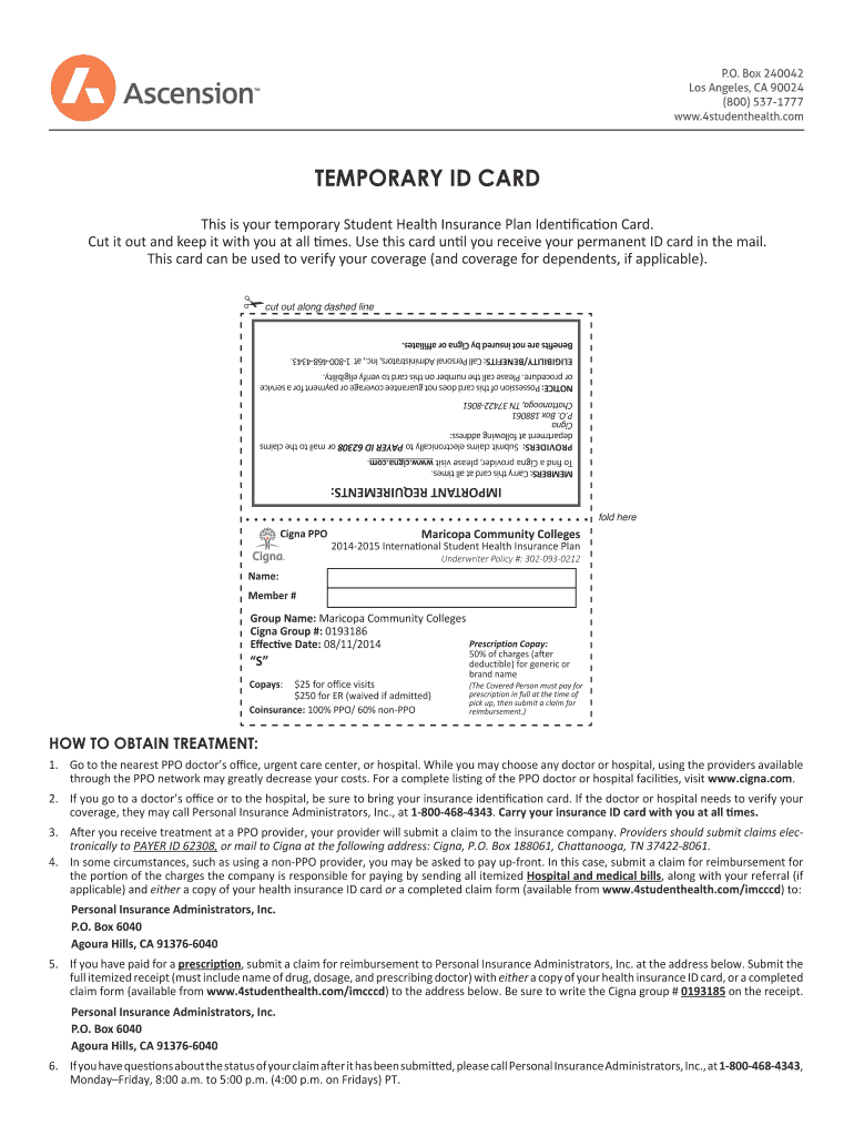 P.O. Box 240042 Los Angeles, CA 90024 (800) 5371777 www.4studenthealth.com TEMPORARY ID CARD This is your temporary Student Health Insurance Plan Identification Card. Cut it out and keep it with you