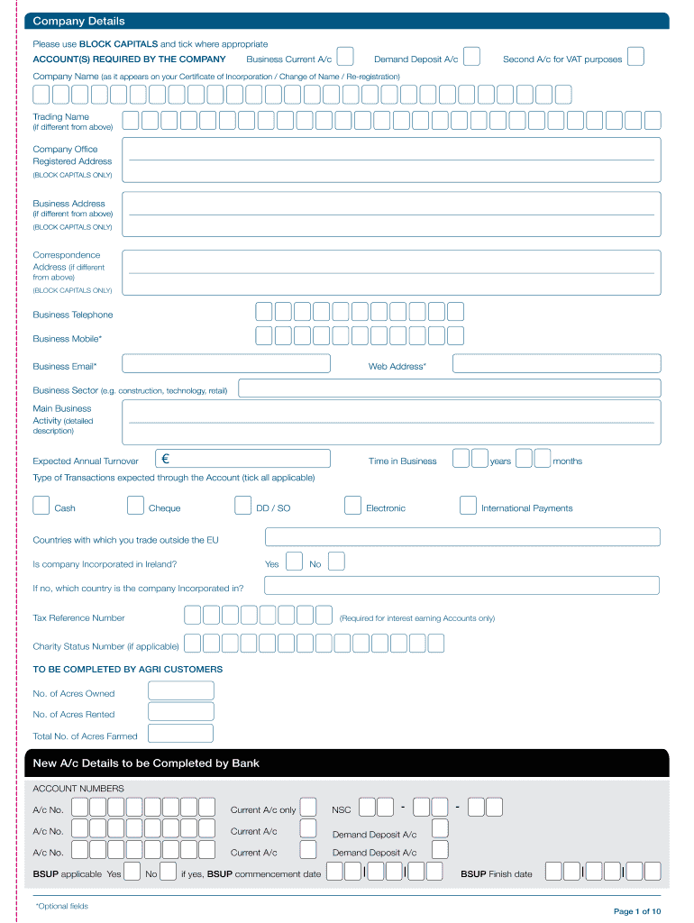 Business & Agra Company Business Current and Demand Deposit Account Application Pack Documents and Identification Required to Open your Business Account with Bank of Ireland Gather the following documentation: