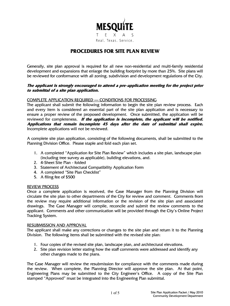 PROCEDURES FOR SITE PLAN REVIEW Generally, site plan approval is required for all new nonresidential and multifamily residential development and expansions that enlarge the building footprint by more