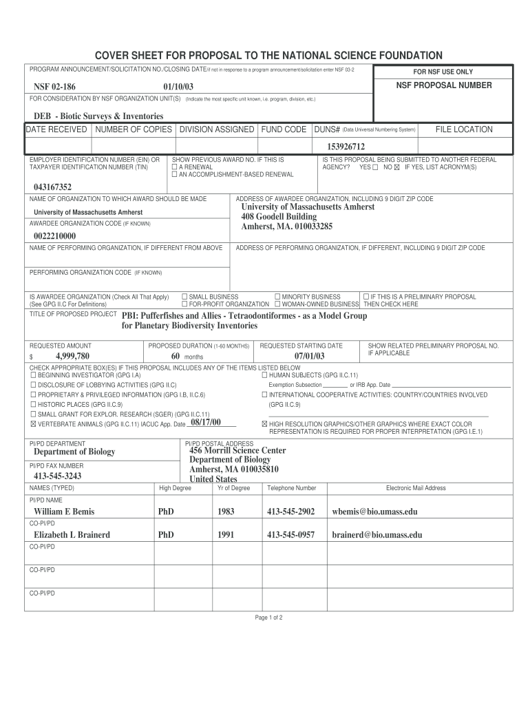 Get the free NSF Proposal Cover Sheet